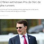 2020年10月4日 / 最終更新日 : 2020年10月4日 松田 隆🇯🇵 @東京 Tokyo🇯🇵 海外競馬 武豊ジャパン凱旋門賞出走取り消し G1凱旋門賞(芝2400m)で、武豊騎手騎乗予定のジャパンなどA・オブライエン厩舎の4頭が出走を取り消した。