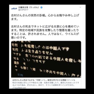 こうして台湾のネットが熱くなっている時に、その上からガソリンを撒くような出来事が起きました。中国のネットユーザーが、志村けんさんの中国語版Wikipediaに「台湾肺炎に感染入院 死去」と書き加えたというのです。