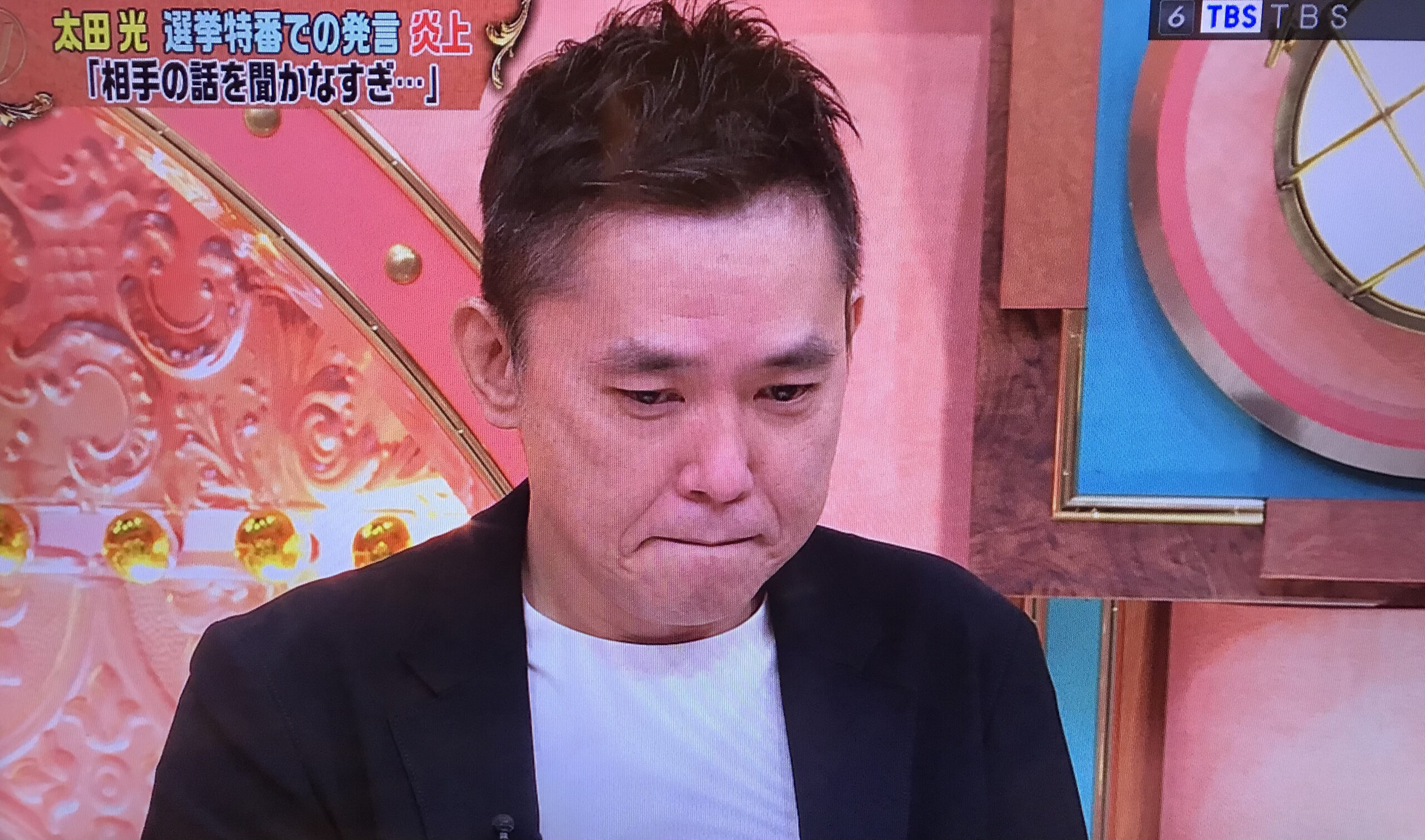 問題は使用者責任(適切な表現ではないかも)の方だと思います。敢えて彼を選挙特番に起用したTBSは、当然のこと太田光氏の政治認識を理解していたはずです。爆笑問題として相方の田中さんとコンビではなく、ぴんで太田氏をMCに据えた意図が不埒で腹が立ちます。少なくともスポンサーに対してはテレビ局としての責任を著しく欠いていたと謝罪しなければならないでしょう。