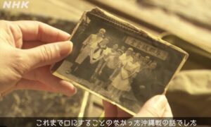 せっかくなので、もう1つ。優子が沖縄戦を語る際に示した家族写真がある。実家が経営する「与那城食堂」の前で家族や住み込みで働く賢三が勢揃いしているものである。