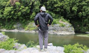 長瀞の岩畳に立つ平井氏(撮影・松田隆)