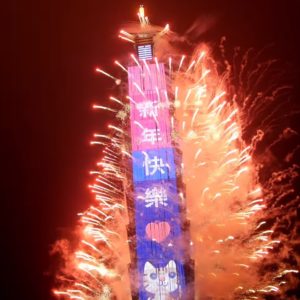 台北のランドマーク『台北101』のニューイヤー花火(葛西健二氏提供)