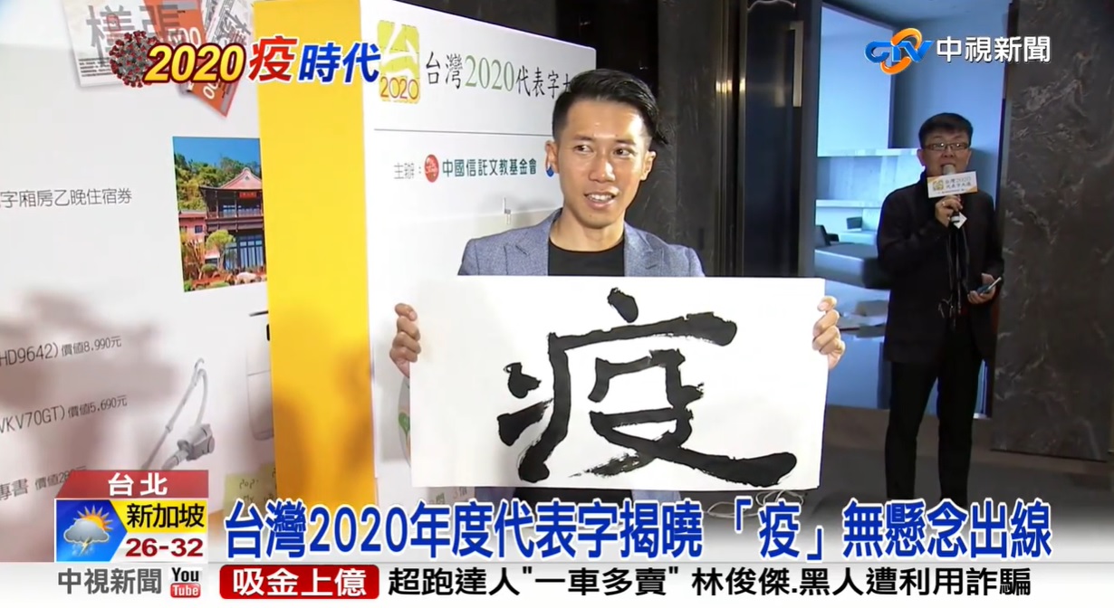 台湾マラソン界を代表する陳彥博氏が揮毫の「疫」(中視新聞 YouTubeチャンネル 2020年12月8日)