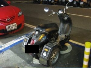 台湾では二輪以外に車椅子使用者や身体の不自由な人でも運転できる三輪バイクも販売、利用されています。また市内の二輪駐車スペースには必ずこのような三輪バイク専用スペースも設けられています。
