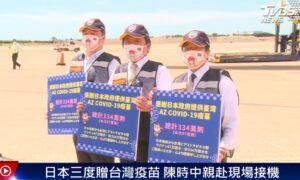 日本国旗と中華民国国旗が施され「ありがとう」と日本語で書かれた特製マスクを着用、中国語と日本後で感謝の意が記されたカードを携えワクチンを出迎えた指揮官は、飛行機から下ろされたアストラゼネカ社製ワクチン保冷器を背景に「日本から提供されたワクチン334万回分、これは全国民の15%をカバーできる」と述べました。