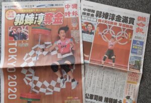 またメダル授与式では2位の中国李俊慧・劉雨辰ペアの面前でチャイニーズタイペイ代表団旗が掲げられ、チャイニーズタイペイ代表団歌(通称「國旗歌」)が流されることになりました。これも五輪史上初の光景で、台湾民進党系メディアは「中國選手聽台灣國旗歌 (中国選手が台湾國旗歌を聞いた)」 歴史的瞬間であると伝えています(自由時報 2021年8月1日付け 第3面 及び三立新聞)。