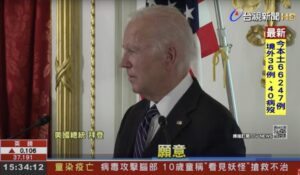 東京でのバイデン米大統領の発言はテレビのニュースチャンネルでは速報として報じられ、各社のニュース番組ではバイデン氏の回答を「強烈的承諾 (強い約束)」(台視新聞2022年5月23日)、米国の軍事力による台湾防衛を「意外表態 (予想できない表明)」(非凡新聞2022年5月23日)であったとし、会見の模様を交えトップニュースとして繰り返し放送、また台湾各紙は翌24日付の一面トップでバイデン氏の発言を伝えました。