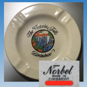 2つ目の灰皿はジンバブエのビクトリアの滝(The Victoria Falls)で買った。中央の青い部分が滝で、虹が架かっているのがお分かりだろう。何か日本の観光地にあるようなテーストだなと感じて買ったような記憶がある。どこで作られたのか気になって見てみたら、裏面に「made in Zimbabwe」とあった。現地の通貨で100円もしなかったと思う。