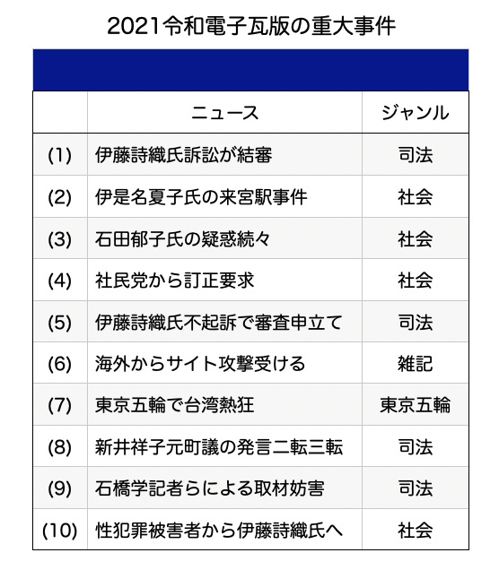 重大事件2021 伊藤詩織氏訴訟結審が1位