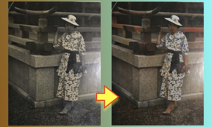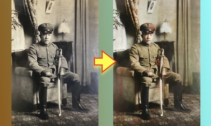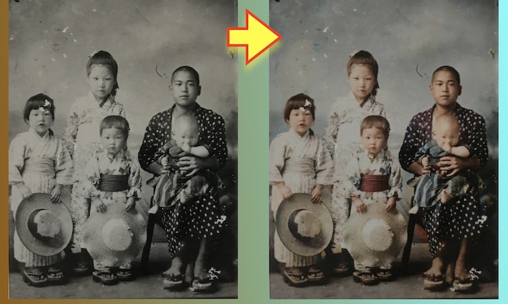 昨今は昭和以前のモノクロ写真をAIを使ってカラー化できるようになっている。どこまで正確に再現できているかは微妙な部分であるが、セピア色の写真が現代的な色合いになることで、あらたな発見もできるというもの。ネット上のフリーソフトを使って、手持ちの古い写真に色をつけてみた。