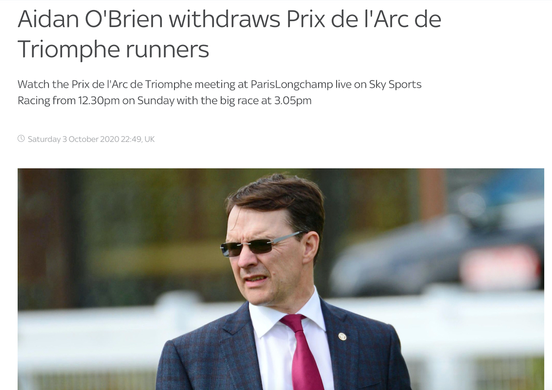A・オブライエン厩舎の出走取り消しを伝えるスカイスポーツ