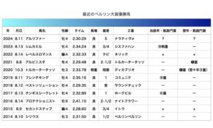 2018年のベストソリューションが2番目のタイムを記録している。同馬はベルリン大賞優勝の後、バーデン大賞、豪コーフィールドカップとG1を3連勝しており、それなりの実力を発揮したことが分かる。3番目のタイムが2021年のアルピニスタで翌年の凱旋門賞を制して繁殖入りしている。速いタイムで勝った馬はそれなりにその後実力を発揮しており、その点からはアルリファーもかなりの実力を持っていると思っていいのかもしれない。