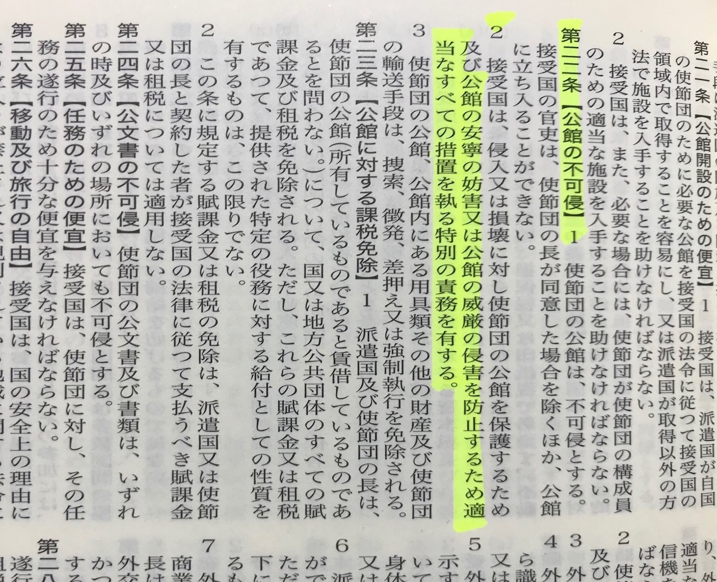 名村記者、ウィーン条約をちゃんと読んでるのかな。記事を書く前に条約を読めば、このような表現にはならないと思うが。
