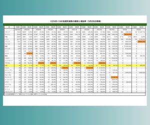安倍首相が瀬戸際の1~2週間と言ったのは2月29日の記者会見であり、実際に対策が始まったのは翌3月1日から。その日までの死者数が表の3月2日の部分に記載されている。日本は6名の方が亡くなっていたことが分かる。