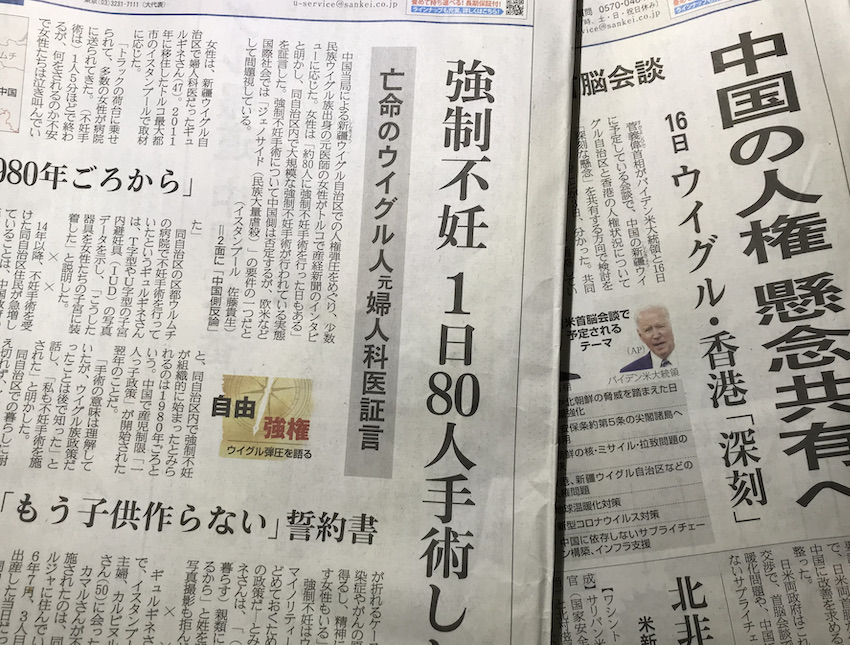 連日報道されるウイグル問題(産経新聞紙面から)