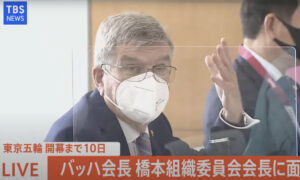 橋下会長を表敬訪問したバッハ会長(TBSNEWS画面から)