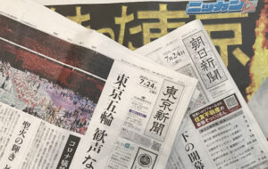 こうした姿勢は社説で開催に反対を明言した朝日新聞も同様である。開会式を伝える24日付けの朝刊の天声人語で「東京という場を借りただけのようなこのイベントは、果たして必要だったのかと」と、ダイレクトに開催に疑問を投げかけた。