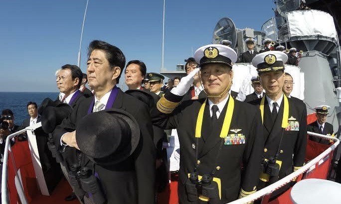 2015年、自衛隊の観艦式に臨んだ当時の安倍首相(同氏フェイスブックから)