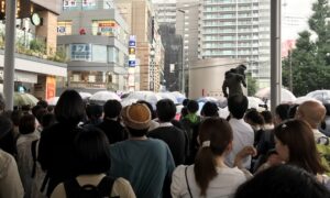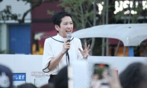 有力候補の蓮舫氏の登場に調布駅前には多くの人が詰めかけたが、蓮舫氏は”つかみ”で失敗した。少子化の問題を取り上げ、東京都の2023年の合計特殊出生率が過去最低の0.99になったことを指摘し、それに対する小池都政を批判。