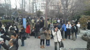 2011年3月11日、大地震当日の日刊スポーツ横の築地川公園