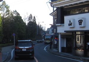 宮ノ下駅は坂の上にあり、駅から下っていくと100mほどで国道1号線に突き当たる。そこを駅伝ランナーたちが走っていく。坂の途中にあるカフェにお邪魔してコーヒーとパフェを注文し、ご主人に話をうかがった。