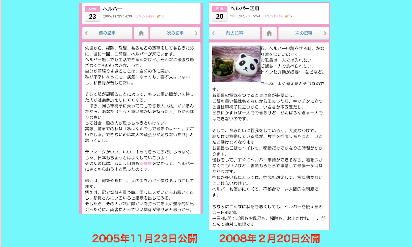その後、2008年に「ヘルパー活用」という記事をアップ。その中で以下のように記述している。