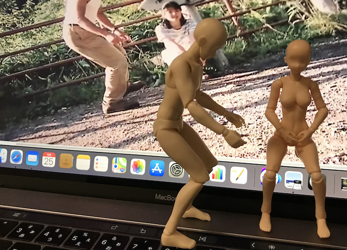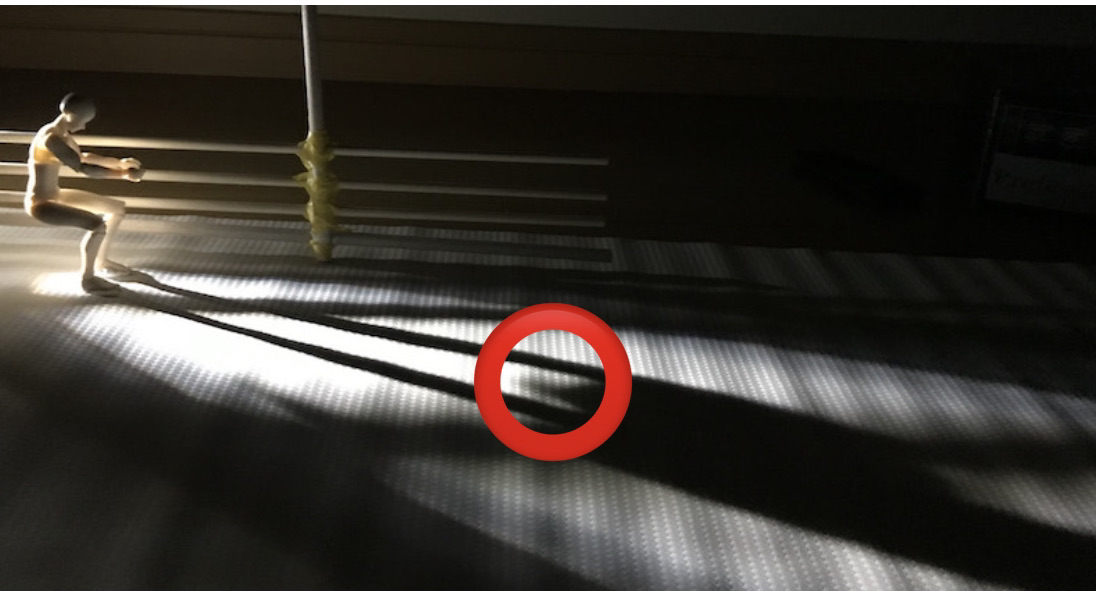 そうすると、これは鈴木氏の股間の部分ではないかという見方もできる。こうした疑問を解消するため、フィギュアと木材を使用し、現場と似た状態を作り出し実際に影を作ってみた(写真③)。