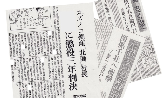 結局、北商は大量の在庫を抱え、負債総額500億円で破産宣告を受ける。この時に東京地裁に代表取締役名義で破産申し立てを行ったのがN・Hであった。破産申し立てには「高価なカズノコを仕入れたが、末端価格が前年(1979年)暮れの2倍となったため、消費者の買い控えが起こった。このため大量在庫を抱えて越年、運転資金が枯渇し、31日満期の手形33億8907万円余以降の決済が不能である」とされていたと報じられた(朝日新聞1980年1月31日朝刊・北商に破産宣告 更生見通し立たず)。
