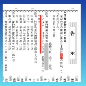 官報にははっきりと帰化の文字