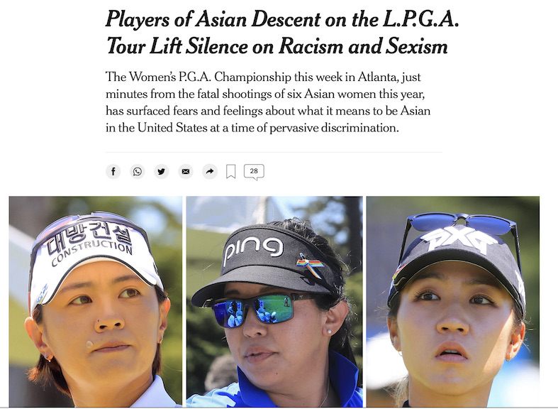 記事全体として、米国で問題になるアジア系へのヘイトの問題で、アジア系が多い女子ゴルファーに聞いて、その中で特にゴルフの世界での差別と思われる事象を取り上げて問題提起をするという手法。