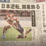 2019年9月21日 / 最終更新日 : 2022年4月2日 松田 隆🇯🇵 @東京 Tokyo🇯🇵 運動 「桐蔭学園の松島幸太朗ってバケモノだな」から8年 W杯で3トライ ラグビーのワールドカップが9月20日に開幕、日本はロシアに30-10で快勝した。